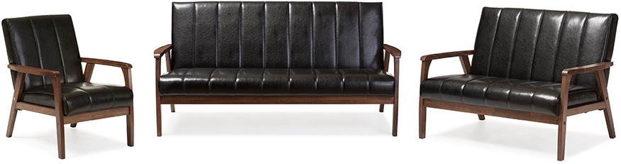 Nikko Mid Century Modern Scandinavian Style Black Faux Leather 3 Pieces Living Room Sets 1stopbedrooms 3 Piece Living Room Sets On Sale