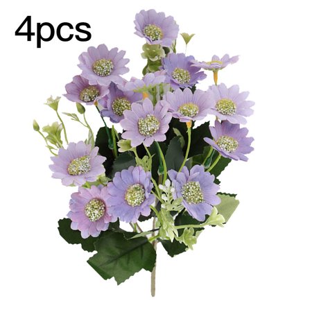 Homeholiday 4pcs Artificial Bridal Bouquet Home Living Room Table Floral Decor Wedding Silk Cloth Fake Flower Living Room Fake Flower Decor