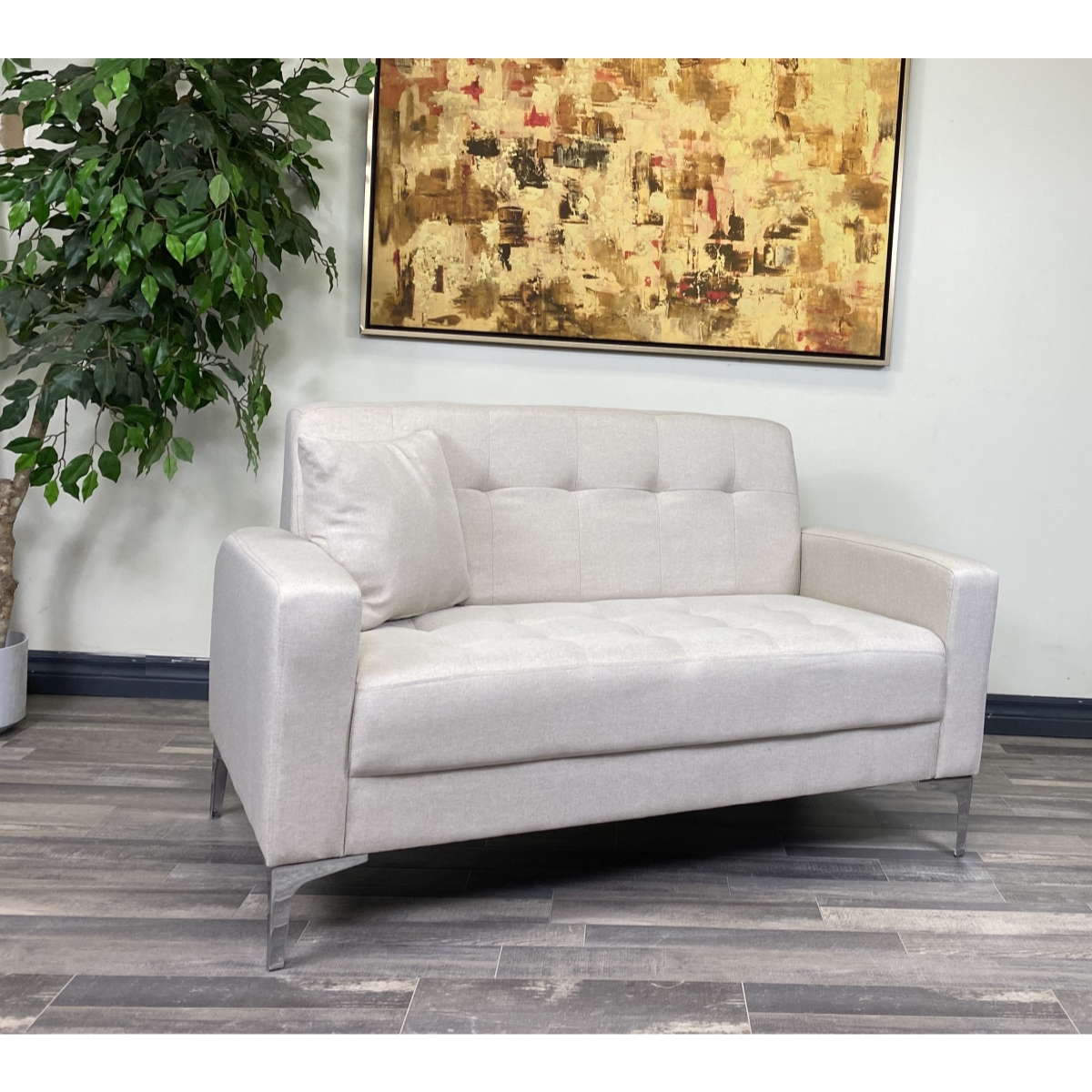 Viscologic Bella Forward Fashion Mid Century Tufted Style Fabric Modern Beige Sofa Living Room
