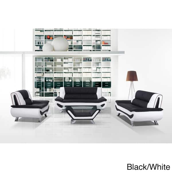 Frady Faux Leather Modern Living Room Sofa And 2 Chair Set Black And White Walmart Com Walmart Com Modern Living Room Black And White Sofa Set