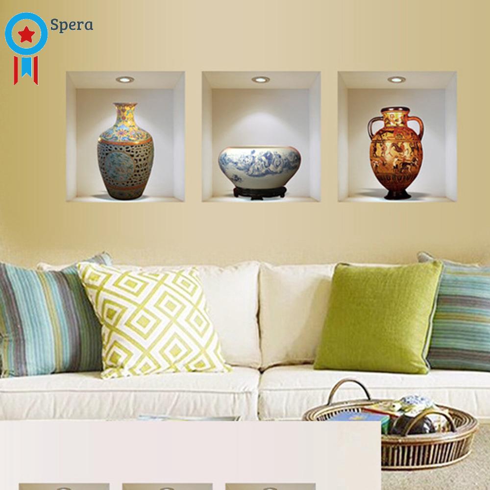 3d China Vase Wall Floral Modern Stickers Decal Murals Home Living Room Shopee Indonesia Modern Living Room Murals