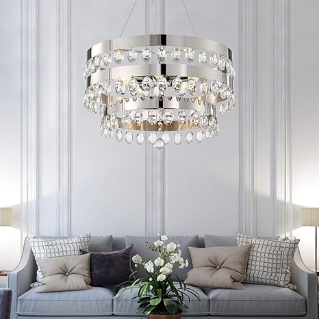 Mqw Crystal Chandelier Modern Scandinavian Living Room Bedroom Restaurant Bar Hotel Silver Round Luxury Crystal Ceiling Lamp 5 Light Source 55x55x36cm Beautiful And Fashionable Amazon Ca Home Kitchen Modern Scandinavian Living Room Design