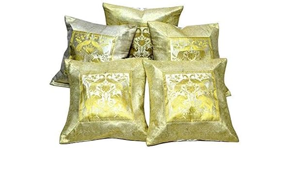 Buy 5pcs Ethnic Indian Handmade Decorative Silk Brocade Traditional Peacock Design Living Room Decor Cushion Cover Vintage Pillowcases Hand Embroidered Boho Bohemian Sofa Pillow Throw 16x16 Cream Online At Low Prices In Traditional Ethnic Indian Living Room Designs